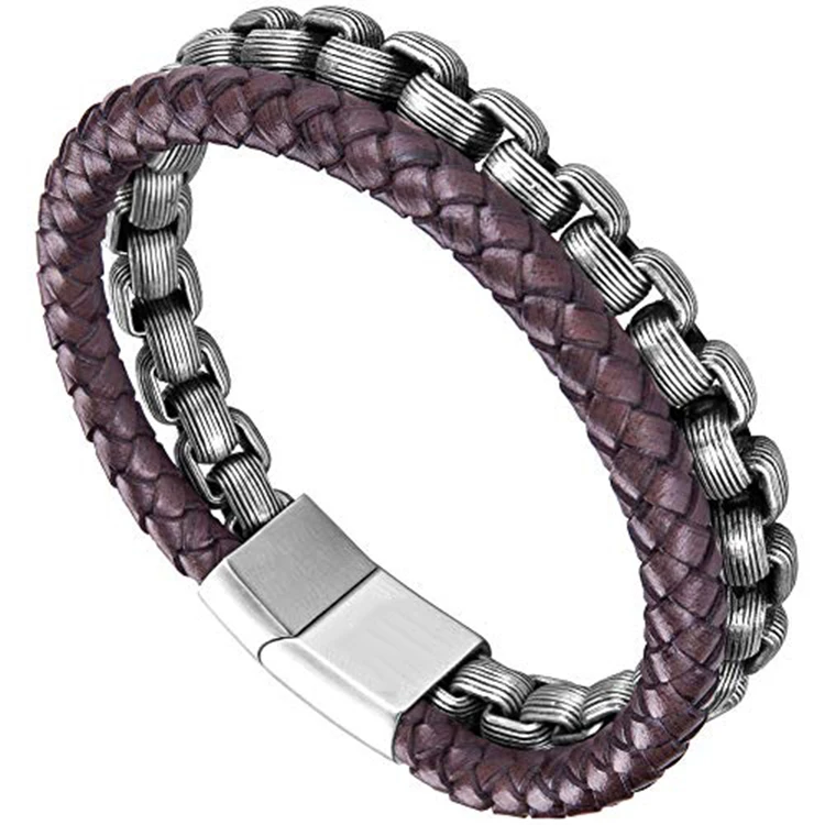 Product Name: | Latest Design Top Quality Vintage Brown Leather Silver Clasp Bronze Grey Stone Bracelet Wholesale |