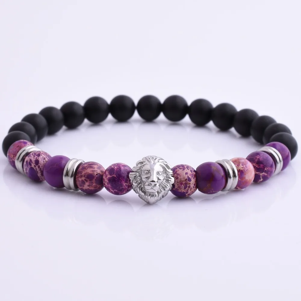 Name | Custom Silver Charm Purple Imperial Jasper Stone Lion Head bead Bracelet Fashion Jewelry |