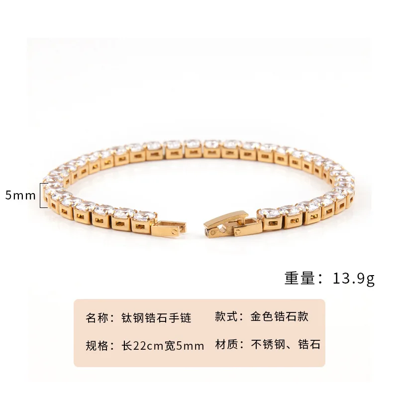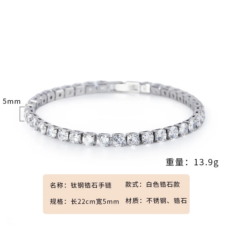 Product Name | New 5Mm Claw Stone Chain Titanium Steel Bracelet Women's Fashion Jewelry Light Luxury Zircon Tennis Chain Bracelet |