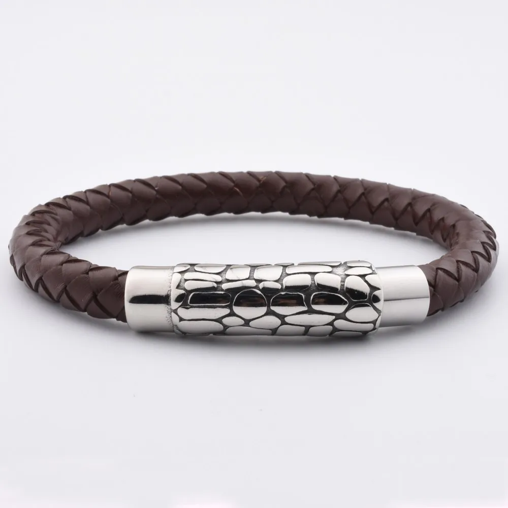 Jewelry Type | High Quality Men 8MM Brown Leather Bracelet Stainless Steel Magnetic Clasp Bracelet Wholesale |
