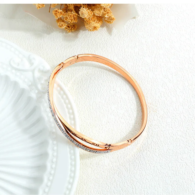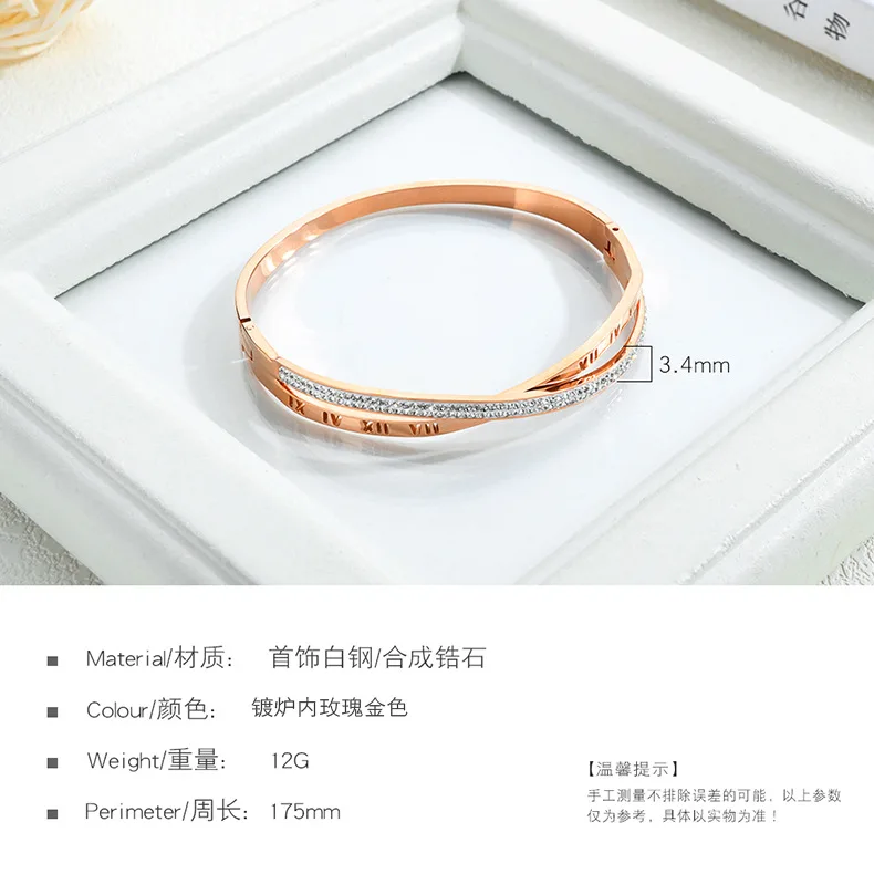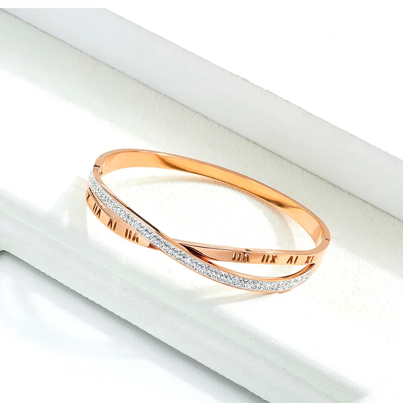 Product Name | Elegant Special Stainless Steel Diamond Roman Numeral Cross Titanium Bangle |