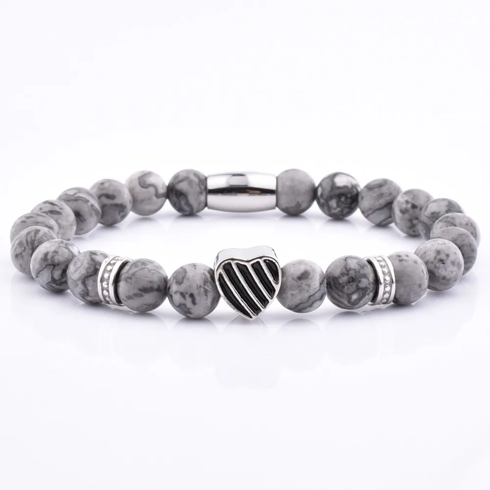 Name | Women Stainless Steel Silver Love Heart Charm Grey Jasper Stone Bracelet Jewelry |