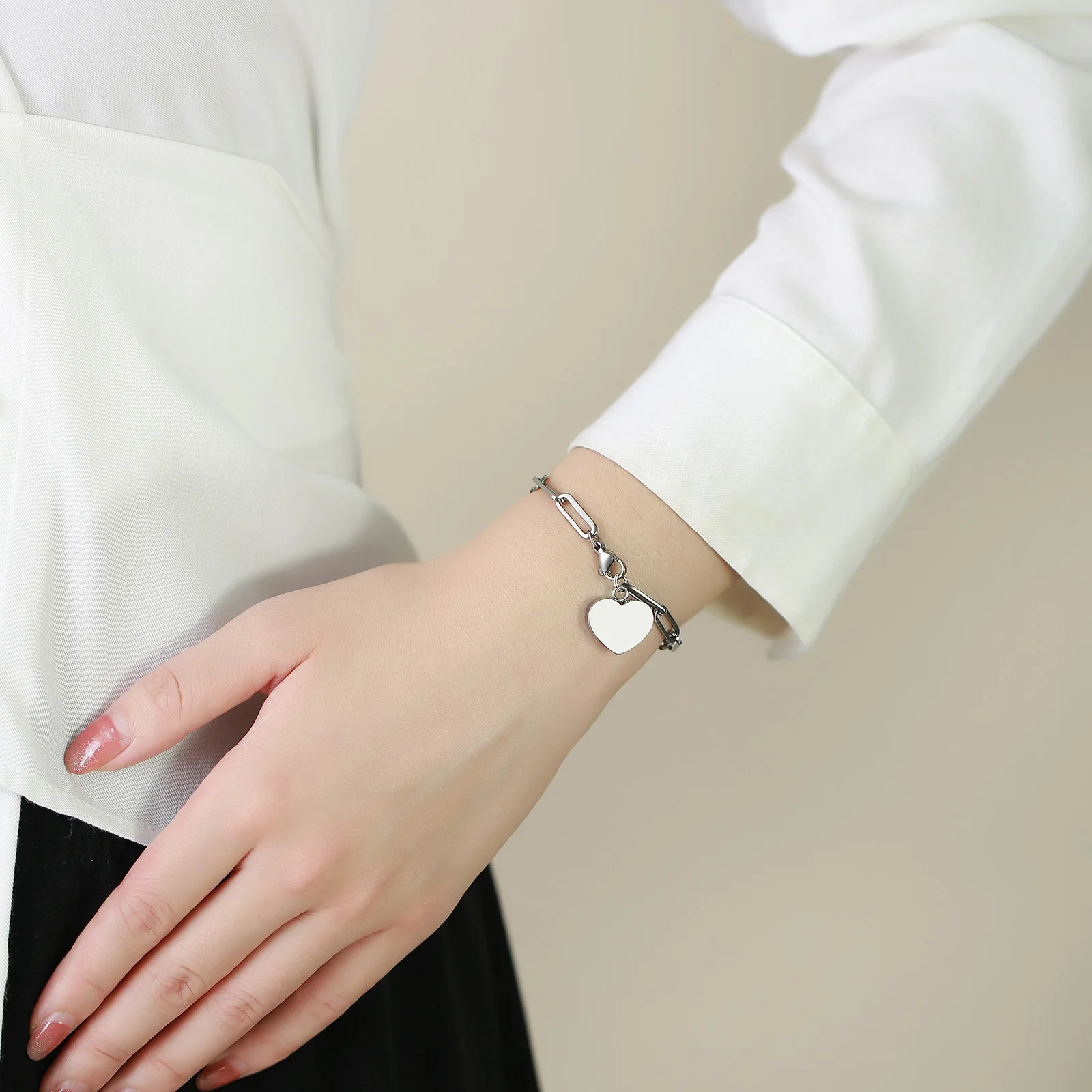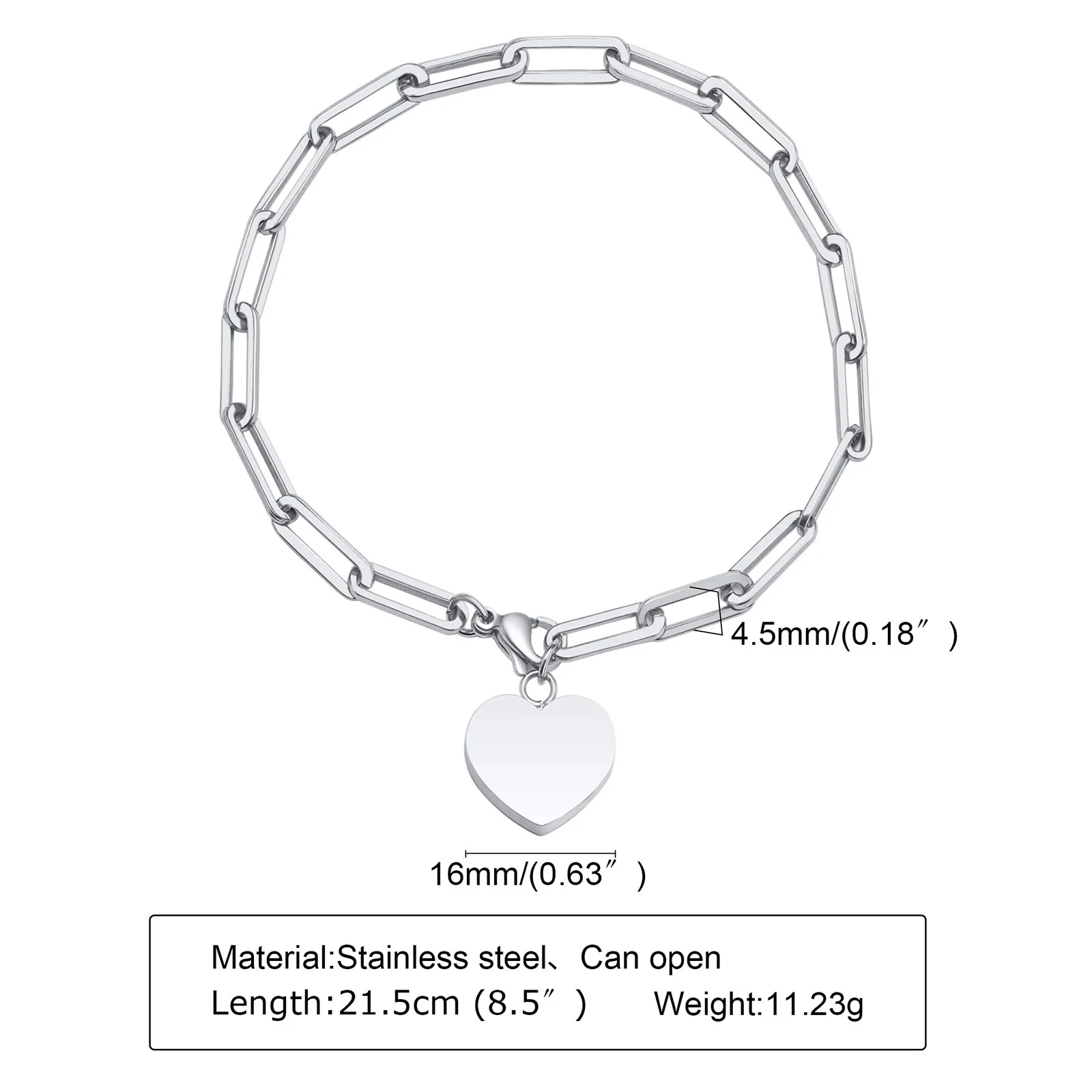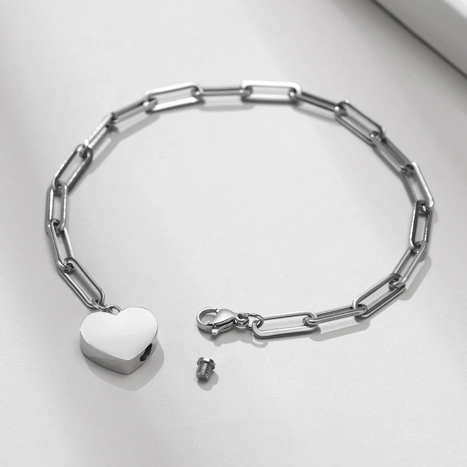 Product Name | Ladies Stainless Steel Heart Urn Flat Long Cross Chain Bracelet Steel Color |