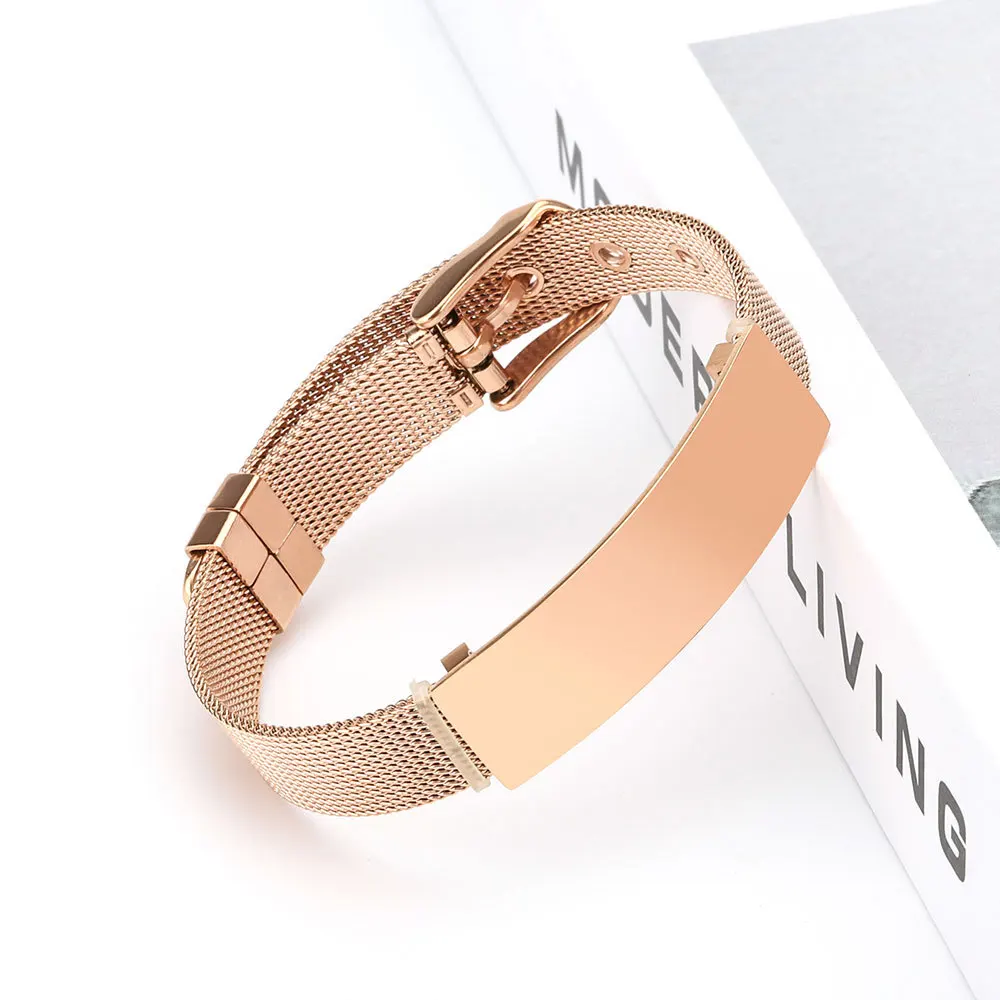 Product Name | Adjustable Buckle Diy Lettering Factory Direct Selling Stainless Steel Curved Bar Mesh Belt Bracelet |