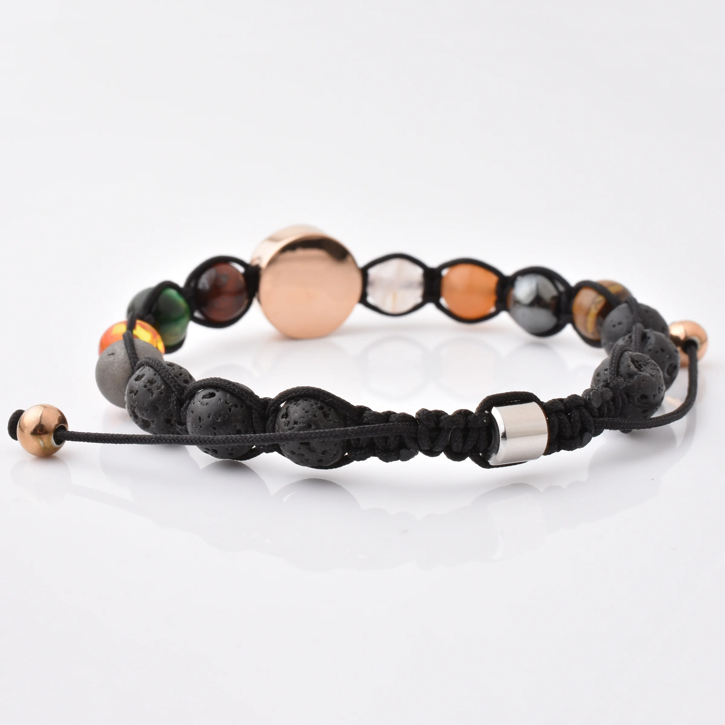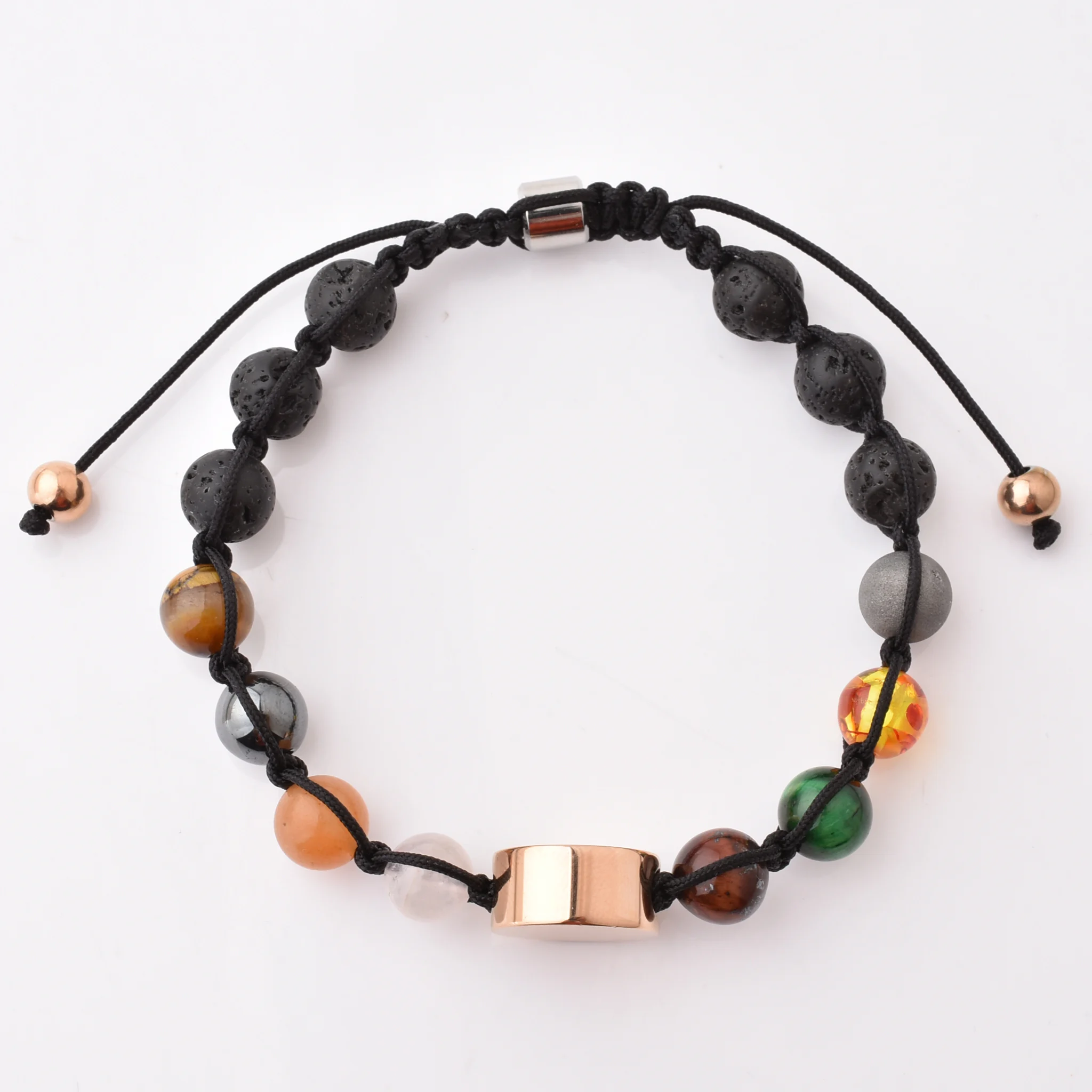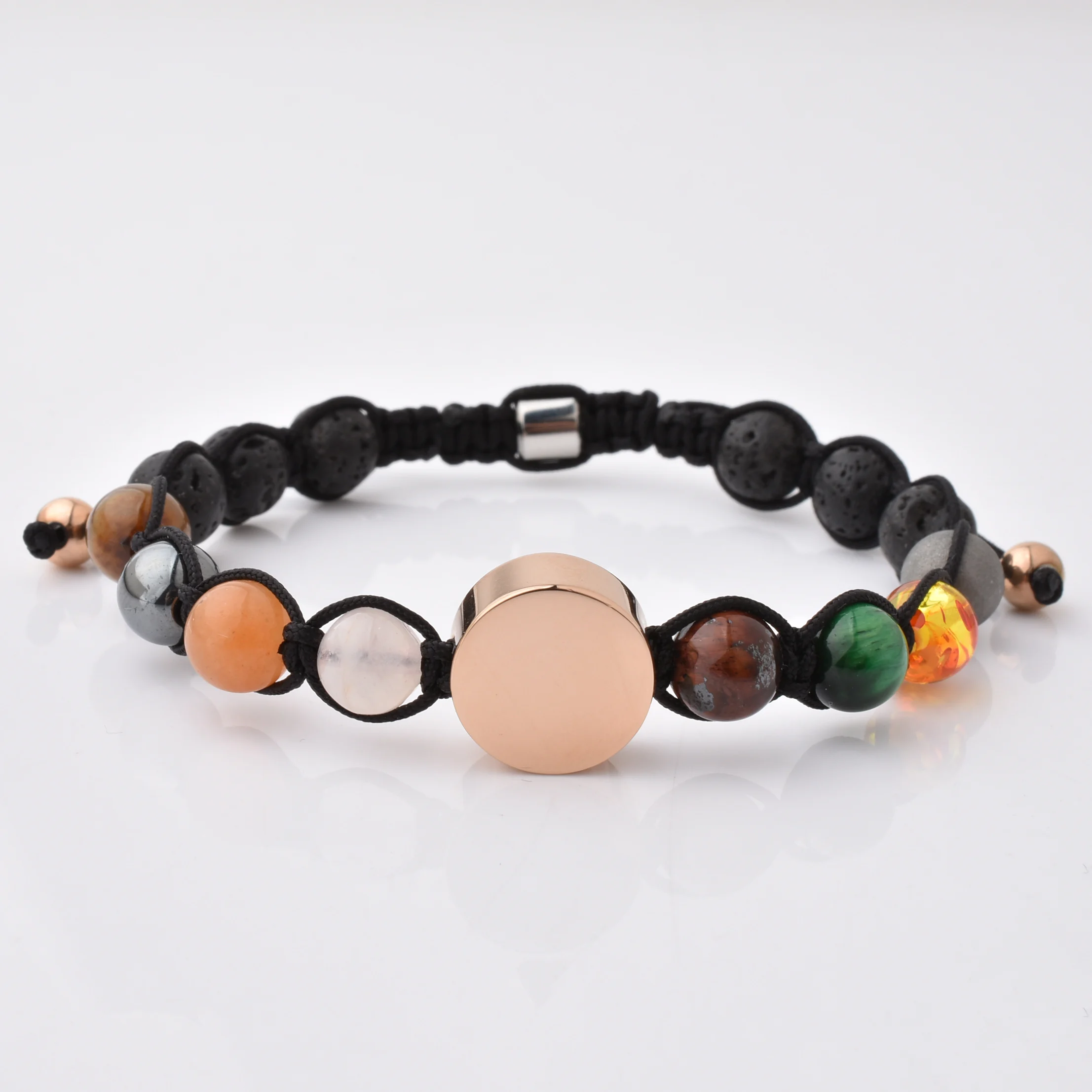 Product Name | Natural Gemstone 8Mm Chakra Round Beads Flat Metal Spacer Healing Stone Beaded Adjsutable Macrame Bracelets |