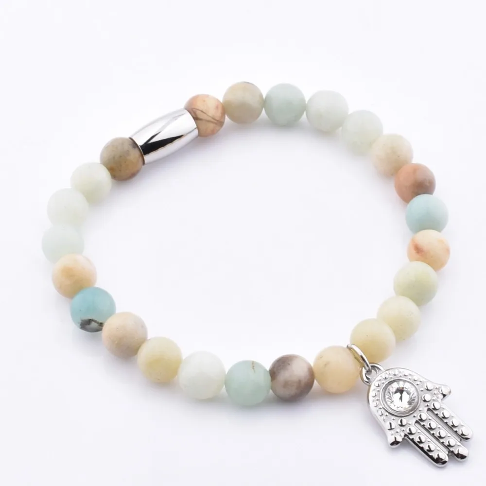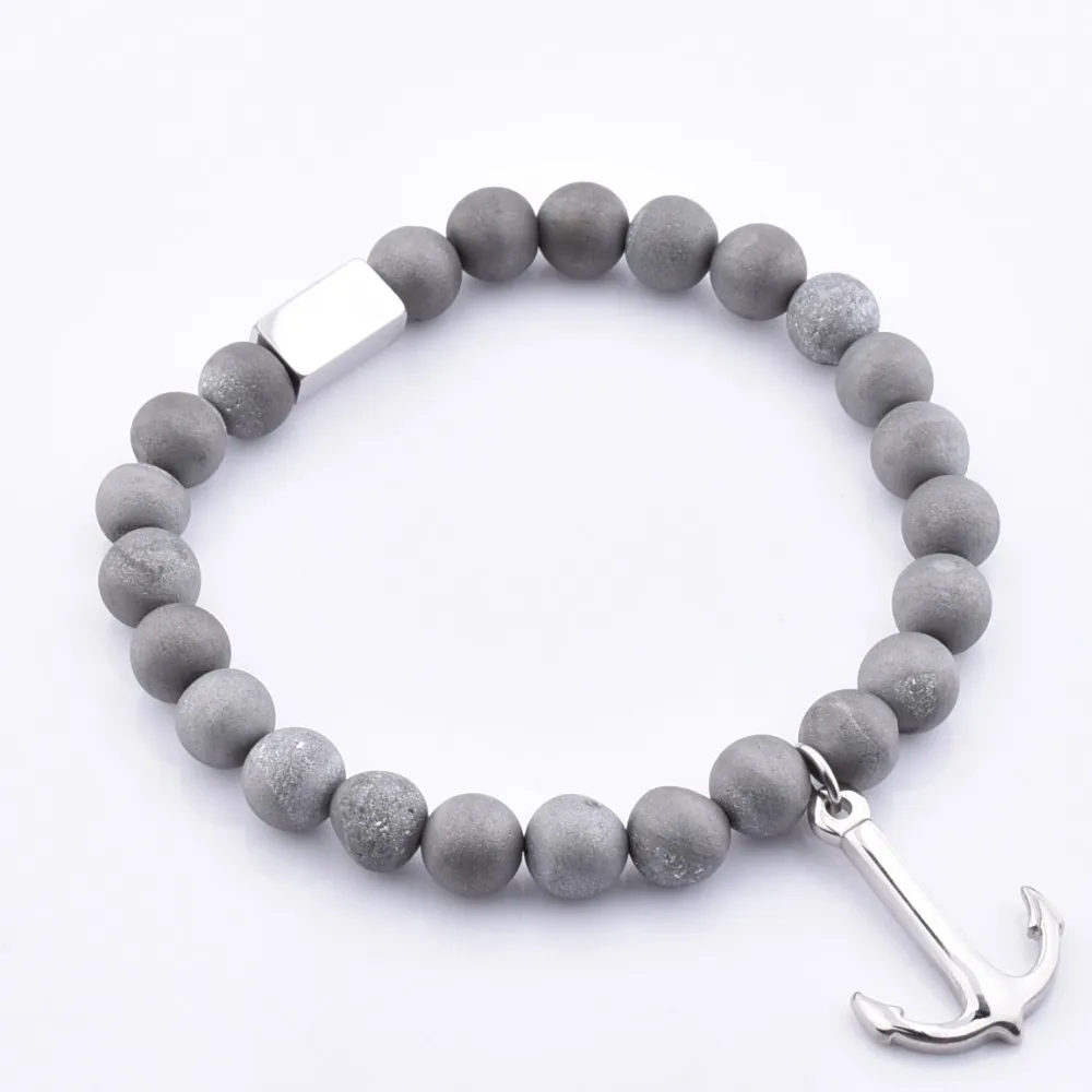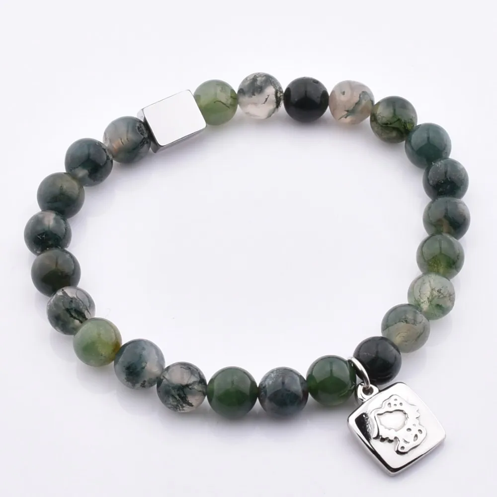 Name | Natural Genuine Ocean Grass Agate Stone Man Stainless Steel Charm Stretch Bracelet |