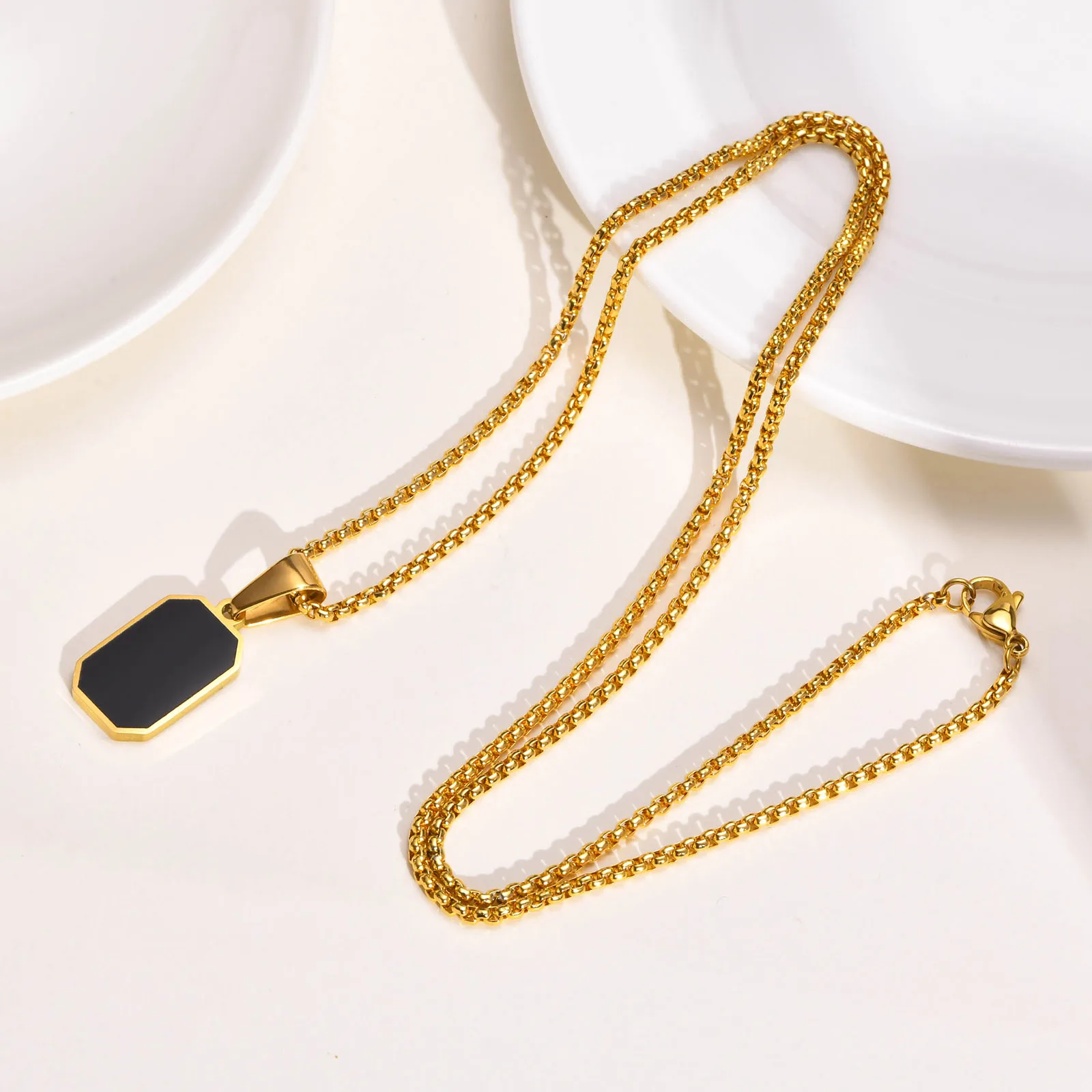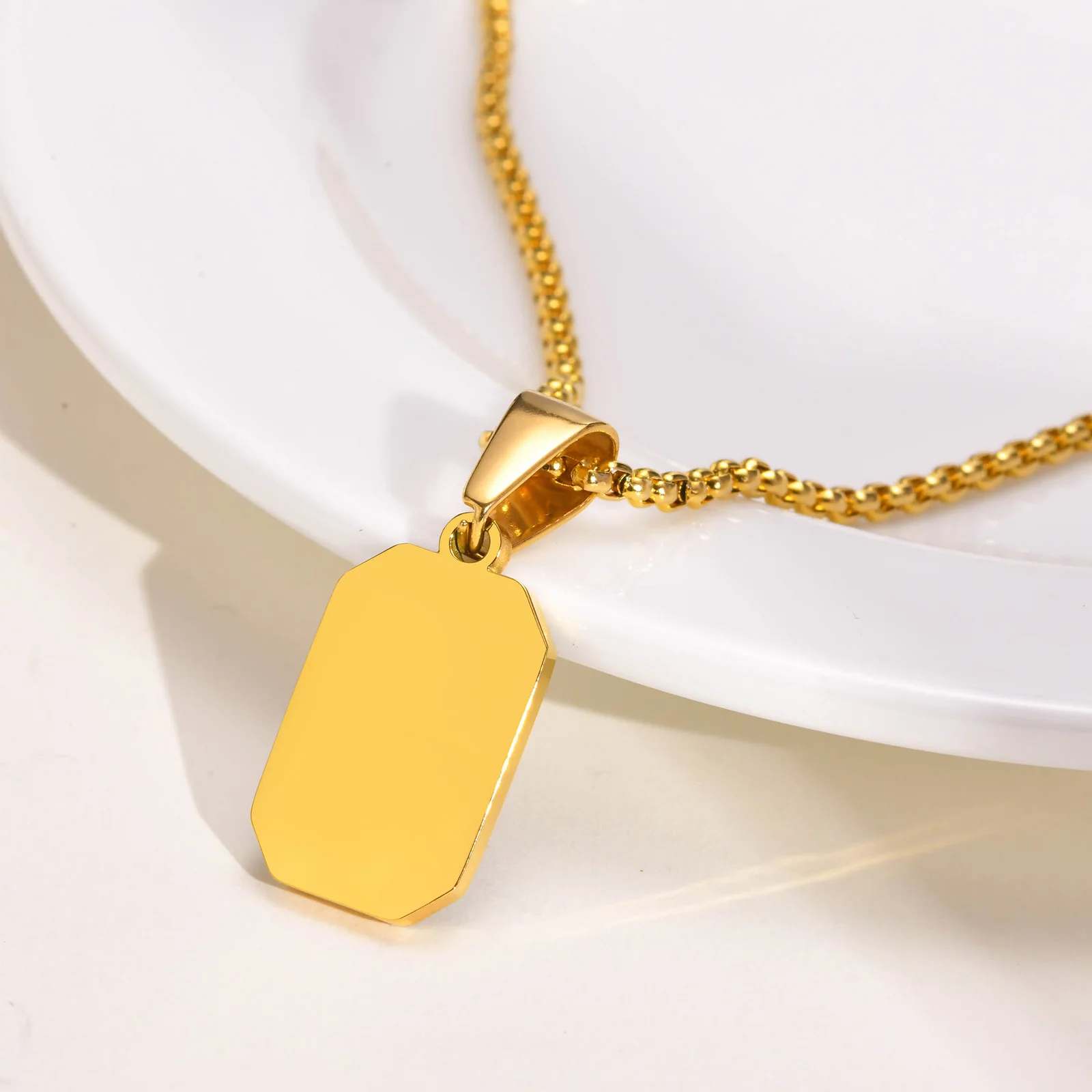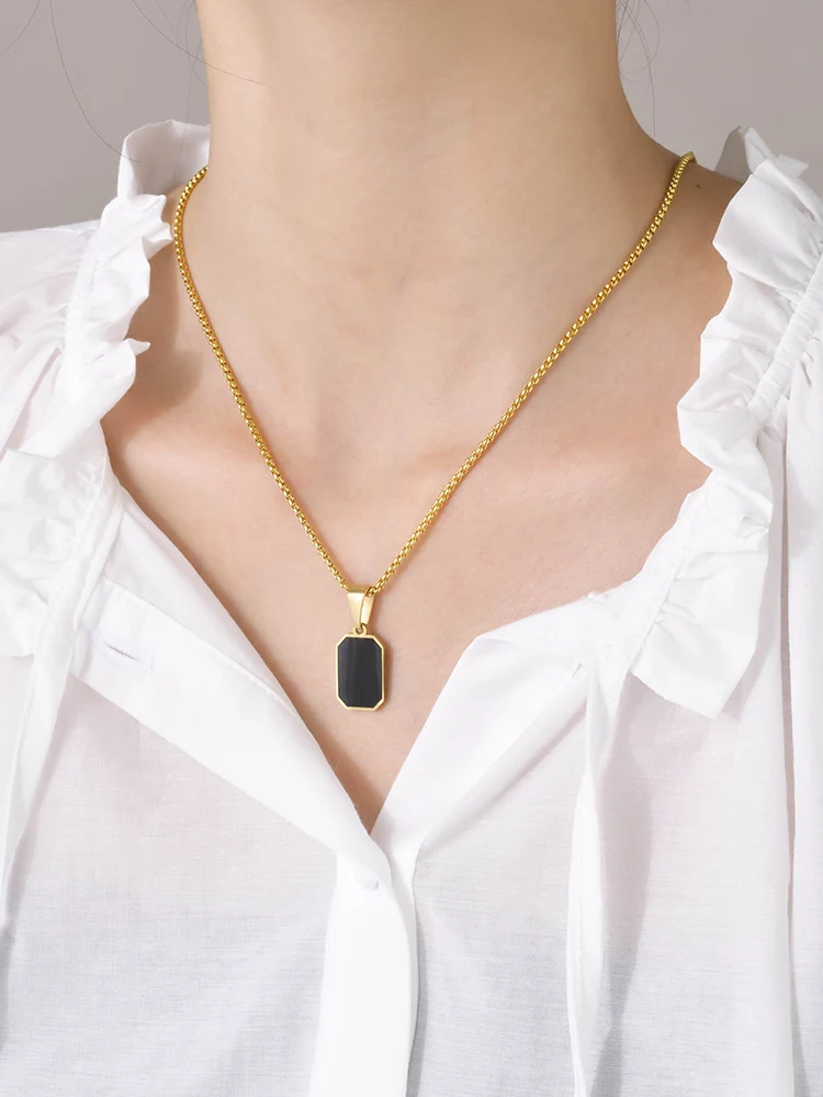 Product Name | 18K Gold Plated Stainless Steel Square Rectangle Pendant Necklace Geometric Gold Silver Necklace Jewelry |