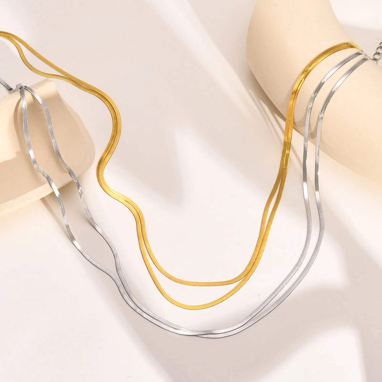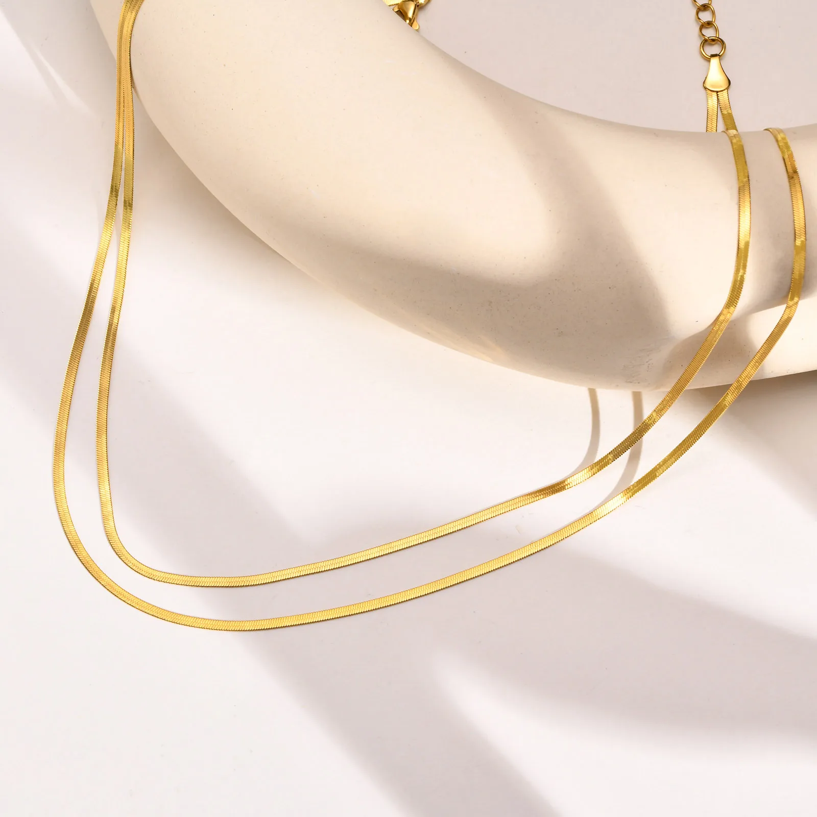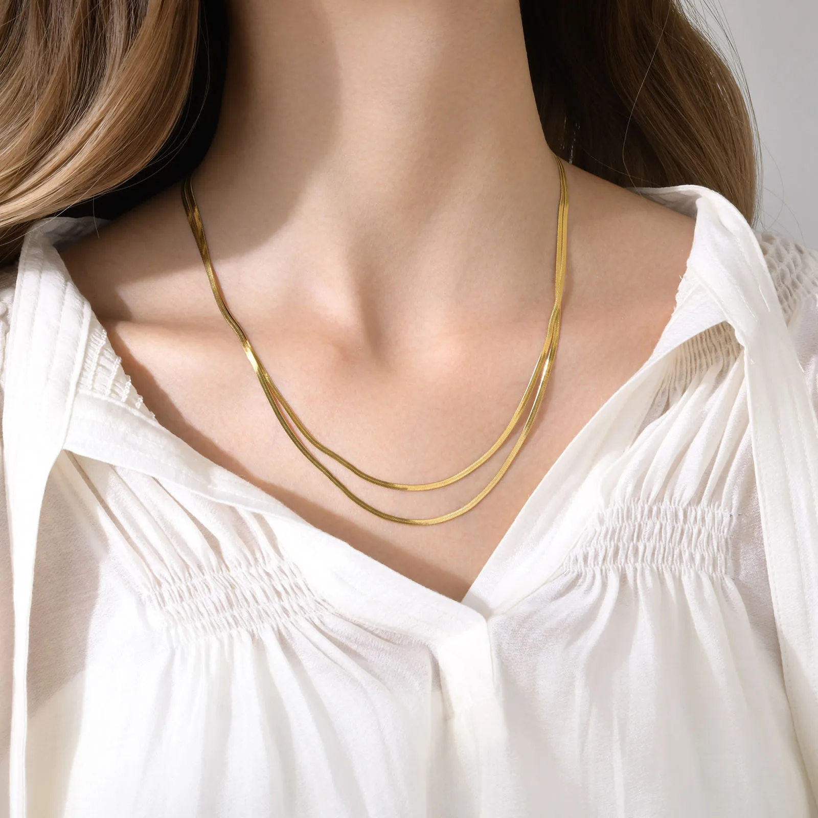 Jewelry Type | Fashion New Arrival Gold Plated Silver Stainless Steel Jewelry Charm Double Layer Snake Choker Necklace for Women |