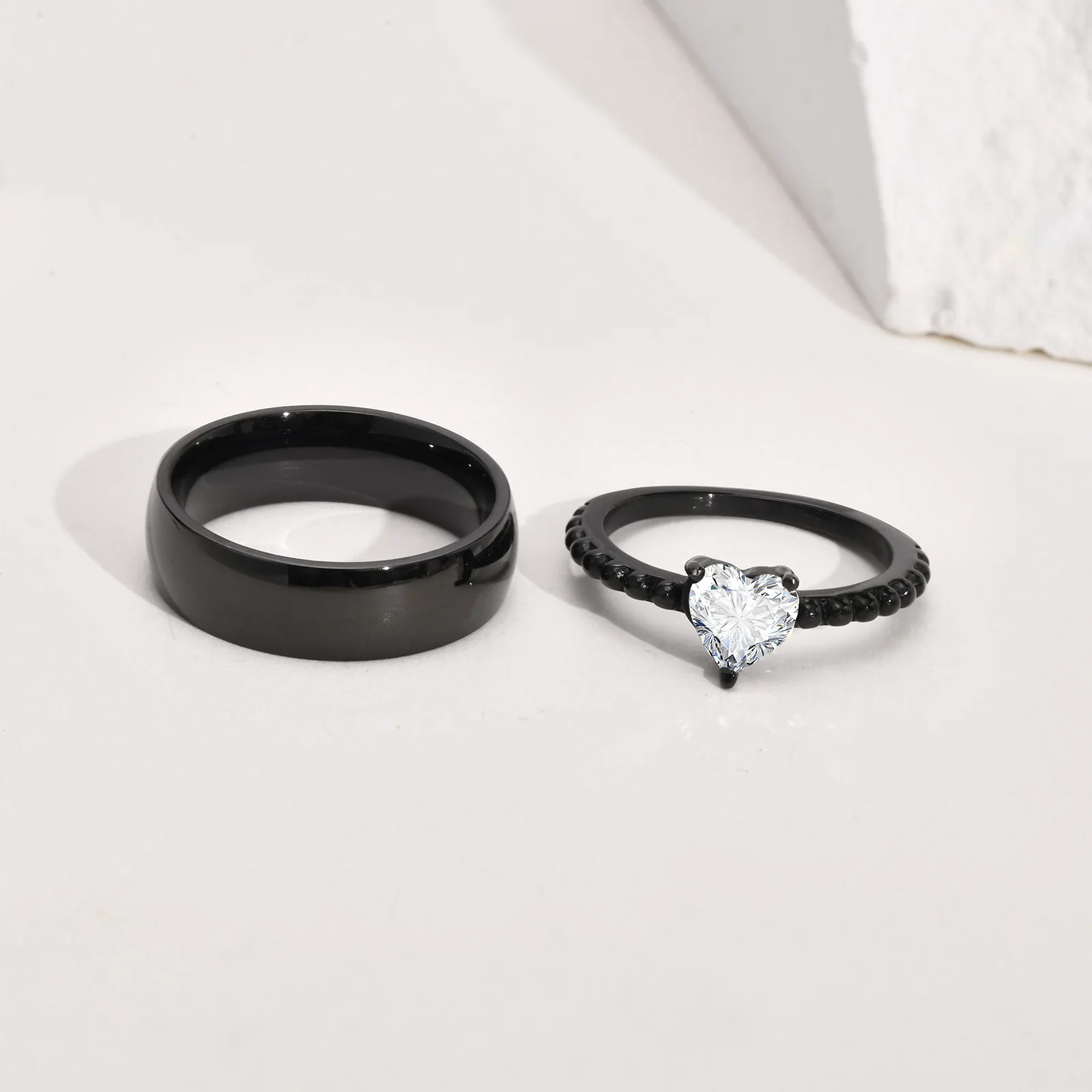 Jewelry Type | Fashion Stainless Steel Black Couple Ring Jewelry For Wedding Engagement Jewelry Diamond Zircon Ring Couple Rings |