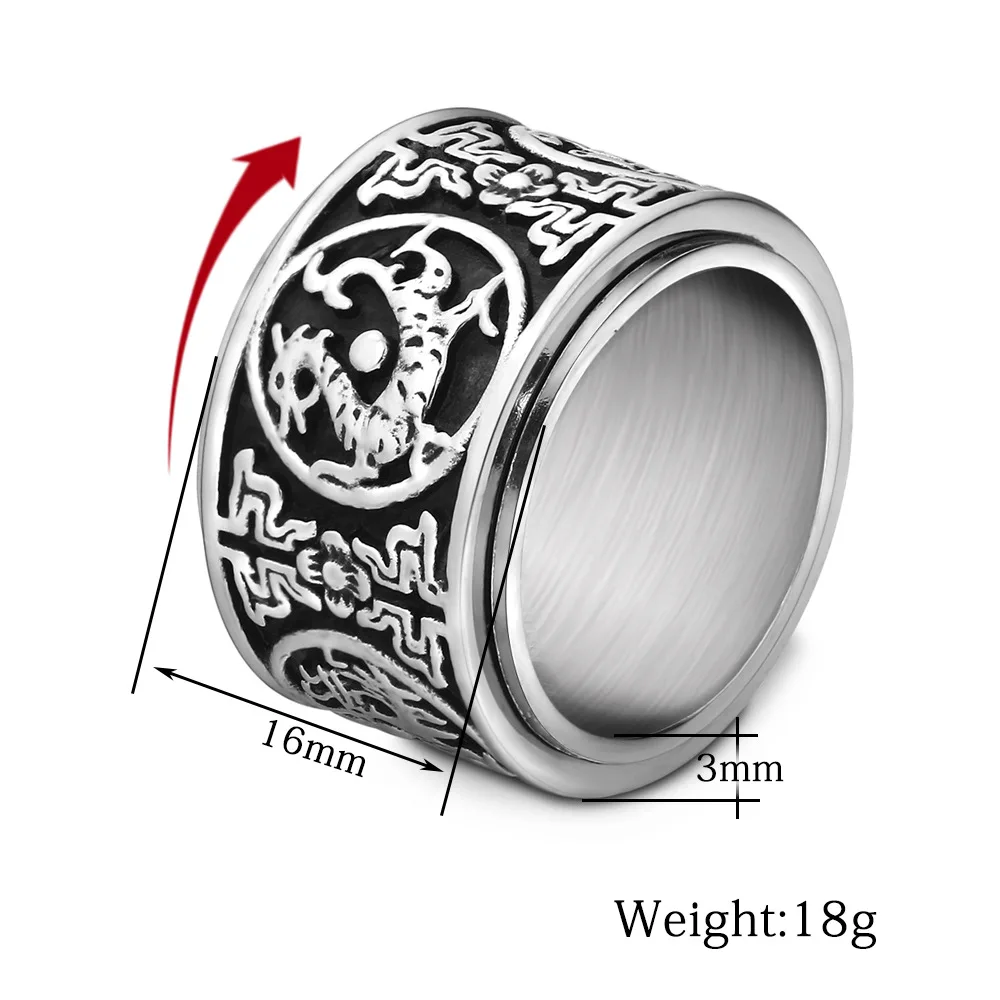 Jewelry Type | New Four Great God Beast Ring 316L Stainless Steel Double Dragon Rotating Ring For Men |