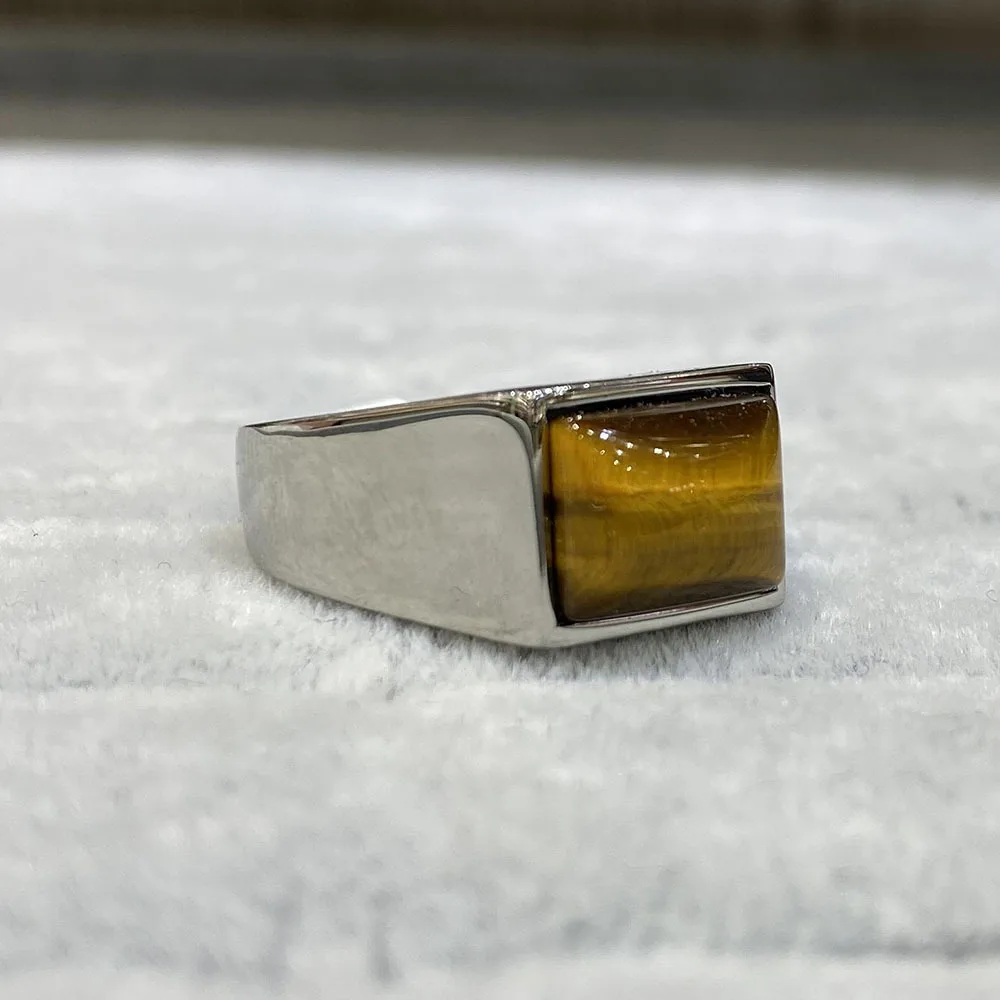Product Name | Simple Style Rectangular Titanium Steel Ring Stainless Steel Tiger Eye Gemstone Jewelry |