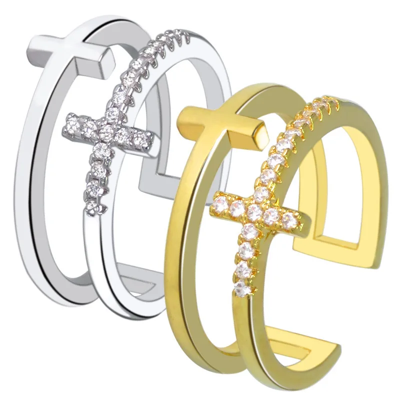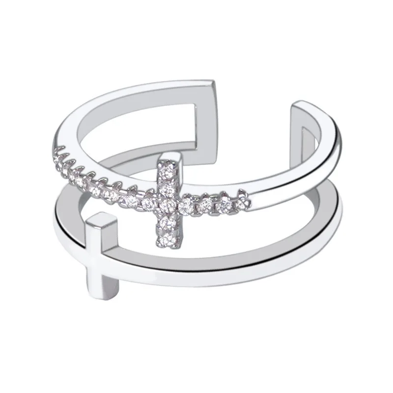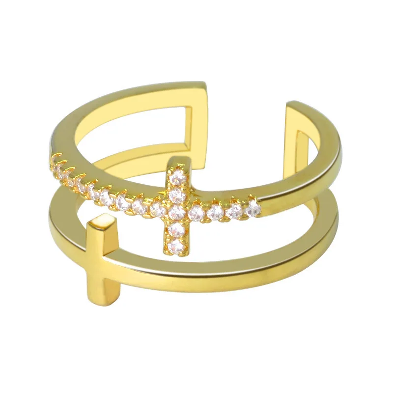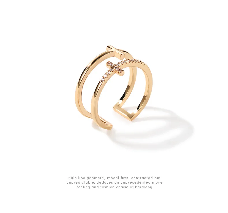 Product Name | Factory Price Double Cross Ring Women Fashion Zircon Open Adjustable Ring |