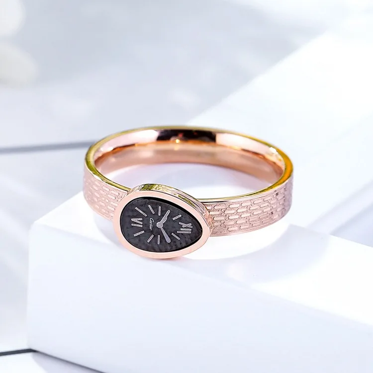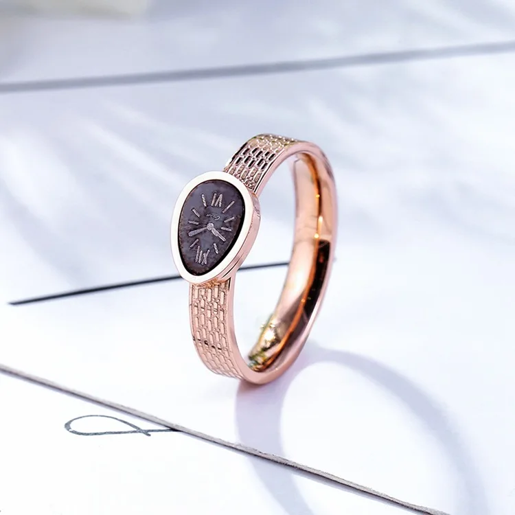 Jewelry Type | Factory New Arrival Wholesale Custom Logo High End Rose Gold Plated Stainless Steel Oval Watch Ring For Women |